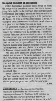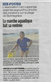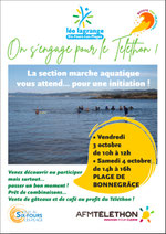 Le vendredi 3 et samedi 4 octobre une initiation à la marche aquatique était organisée à la plage de Bonnegrace à Six fours au profit du Téléthon, réalisé par l’Association Léo Lagrange, Aline, Sophie et Annie étant organisatrices de cet événement. Malgré le vent le samedi sur la plage, la bonne humeur, la convivialité, la dégustation de gâteaux préparés par les participants a permis d’échanger avec les promeneurs. Certains se sont arrêtés pour faire l’initiation à la marche aquatique avec les animateurs heureux de faire connaitre leur activité. Un grand merci à tous pour cette générosité et l’excellent moment passé ensemble pour un évènement caritatif avec la marche aquatique.